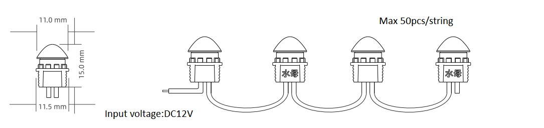 Jellyfish Lamp 9mm 0.16W 50 Pcs Per String Waterproof IP67 Visible Light Led Pixel Light For Signs